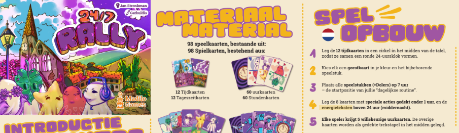 De spelregels zijn naast elkaar in het Nederlands en Duits opgemaakt . Daarmee is ruimte gespaard voor het ‘dubbel’ printen van de plaatjes. Dit was nodig om het geheel op een mooie manier in het speldoosje van slechts 11 x 11 cm te krijgen.